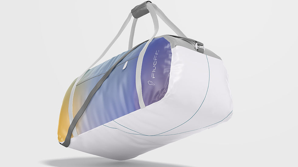 Especialmente as mulheres buscam se sentir bonitas, mas envolvidas por roupas que acompanham seus movimentos e as façam se sentir frescas e protegidas. Por isso, desenvolvemos um símbolo que traz o desenho de uma asa, que remete ao vôo livre e à proteção, traçado com linhas em estilo grosso e fino que mantém o efeito de torção da tipografia, denotando movimento e fluidez. Além disso, elas formam a letra F, que pode ser visto individualmente ou duplicado, o que reforça o nome da marca, tornando-a facilmente memorizável.